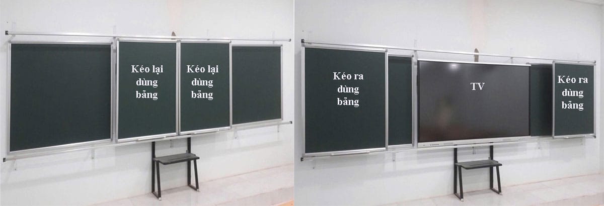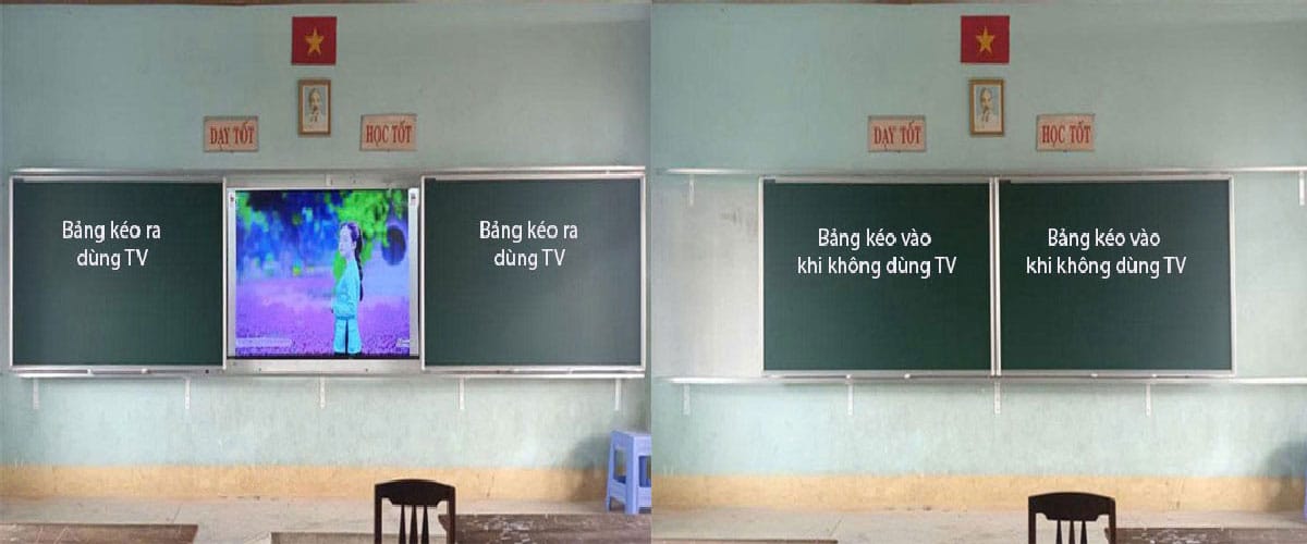 Bảng trượt nguyên khối do Bảng Viết BAVICO sản xuất để trang bị nguyên cụm chuẩn cho khách hàng để phối hợp với TV thích hợp nhất.